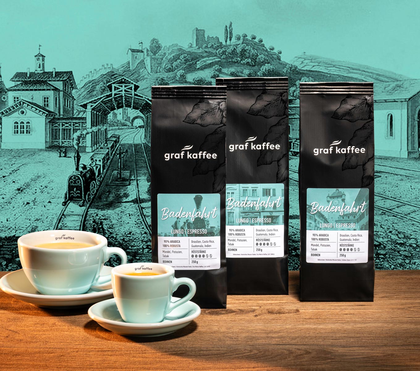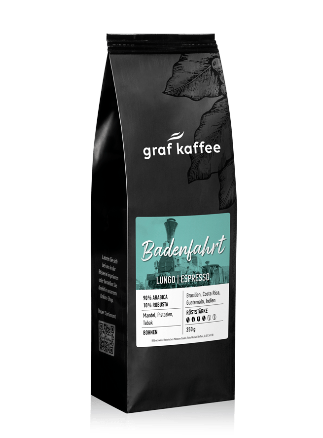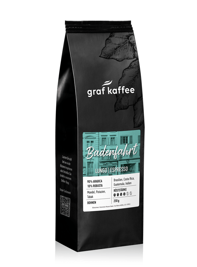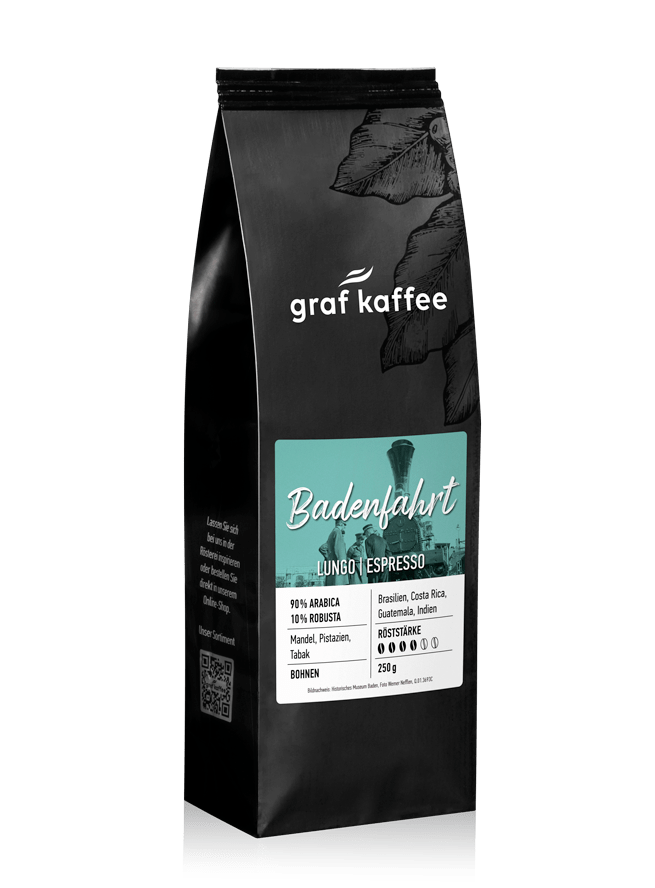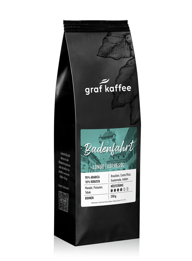 Das Highlight: Unser Lungo-Espresso «Badenfahrt» zeigt sich visuell von seiner historischen Seite: Neu erscheint er als 4er-Serie – mit Originalfotografien anno dazumal aus dem Stadtarchiv Baden.